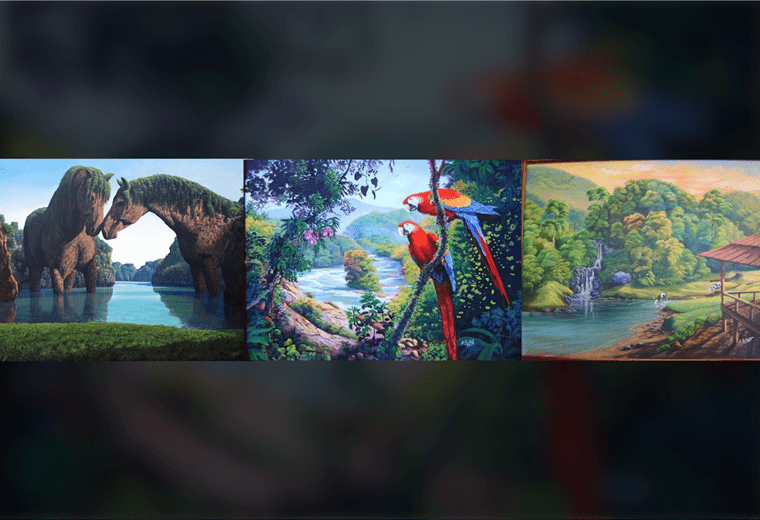 En ella se aprecian dos lapas rojas, que son las que tienen la gama más amplia de colores entre todas las especies de lapas. Se pueden encontrar desde México y hasta Suramérica central; dos subespecies residen en la región centroamericana que se extiende desde México hasta Costa Rica. "Son lapas pintadas detalladamente sin perder valor del paisaje", detalló el pintor en la plataforma digital.