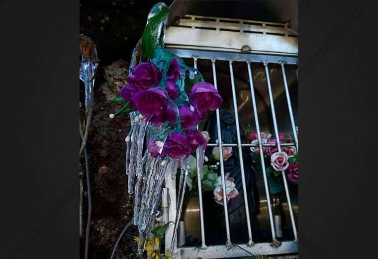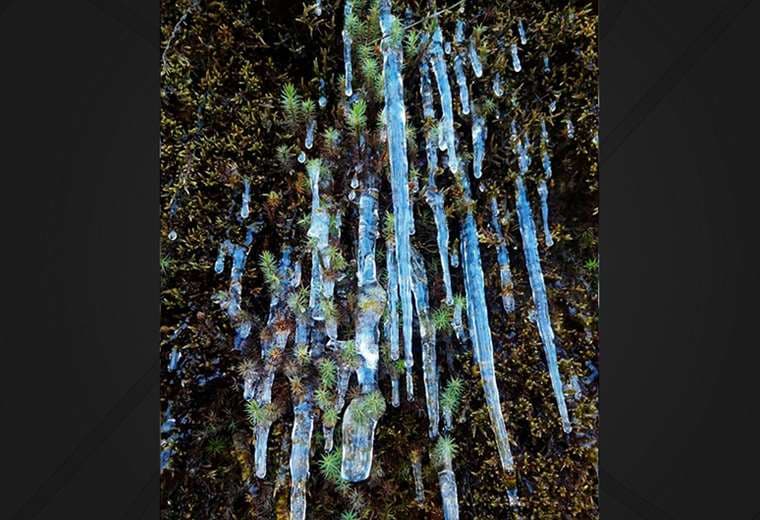 Todo el cerro se cubrió de hielo y escarcha debido a las bajas temperaturas de la época y como parte de los efectos indirectos del empuje frío #8 que afecta al país.