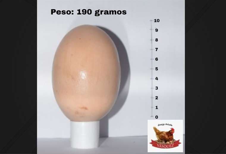 El huevo pesó 190 gramos y midió nueve centímetros. "Lo tenemos como trofeo porque es bastante curioso", relató Cristian Vásquez.