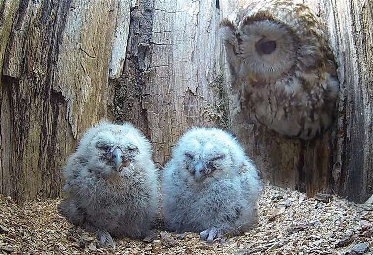 Una lechuza que no podía tener pichones exitosamente, adoptó a dos que quedaron "huérfanos".