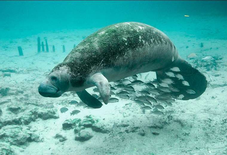 Los manatíes pueden vivir hasta 70 años, medir cinco metros y pesar 500 kilos.