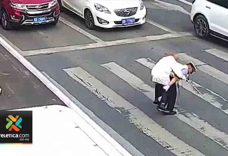 Esto al cargar a un anciano en su espalda que necesitaba cruzar la calle.