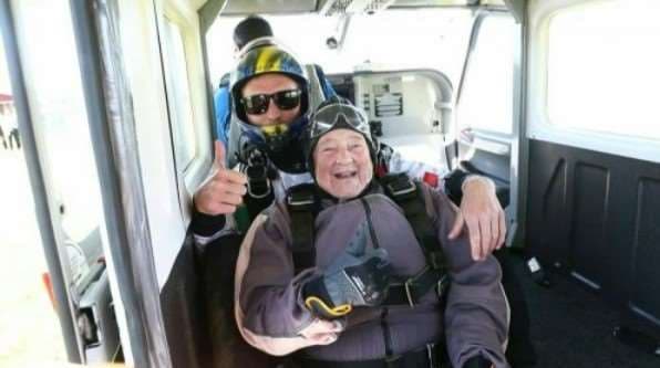 Sueca de 103 años bate récord de la persona más anciana que salta en paracaídas