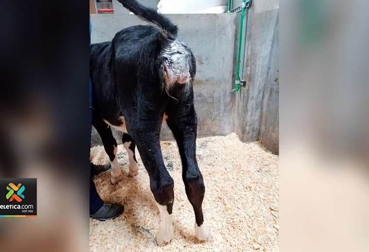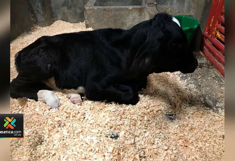 “Es una ternera que tiene una deformación congénita, se llama polimelia y se da cuando dos gemelas y gemelos en esa fase de separación, no logran separarse completamente o uno no se desarrolla completamente, entonces parte de ese gemelo queda unido al hermano", explicó Rafael Vindas, de cirugía de especies mayores de la UNA.