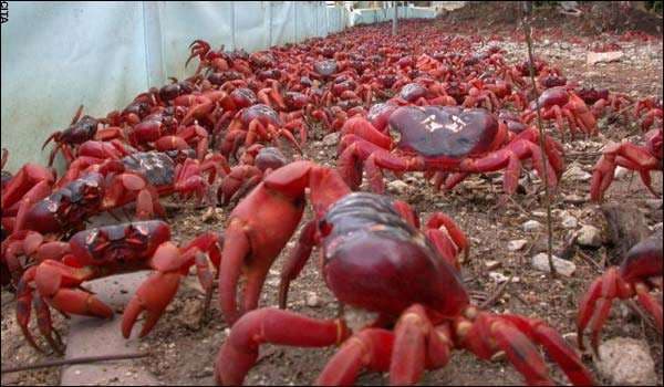 La cantidad es tal que las autoridades tuvieron que crear un puente peatonal exclusivo para estos crustáceos y que no sean aplastados por los vehículos.