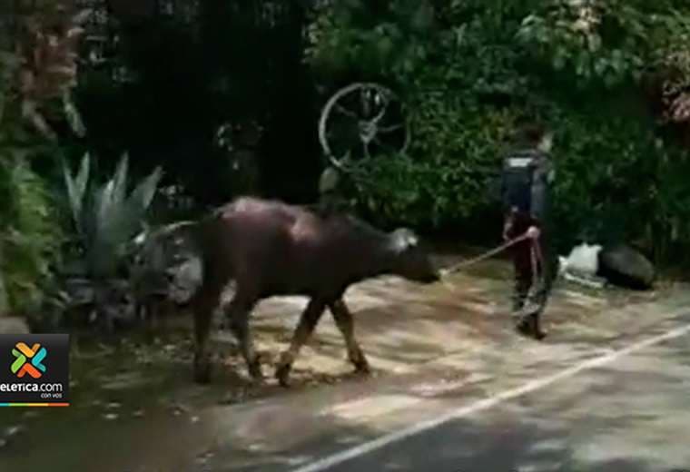 “Un búfalo que deambulaba por las calles de Escazú, fue "detenido" este lunes por los municipales, ante el riesgo en que ponía a los vehículos y el temor de algunos peatones. Aunque la bestia era mansa, no dejaba de causar preocupación entre los vecinos”, señaló la Policía Municipal escazuceña.