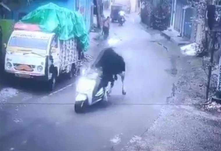 Un hecho poco usual quedó registrado en cámaras de seguridad en la India cuando un toro “robó” una motocicleta tipo scooter que estaba estacionada y salió a toda velocidad con ella.