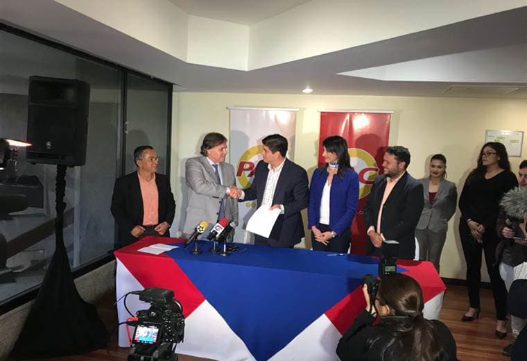 Carlos Alvarado, candidato presidencial del PAC, recibió este miércoles el apoyo de los principales miembros del partido Nueva Generación (PNG), cuyo excandidato Sergio Mena le dio su adhesión a Fabricio Alvarado.