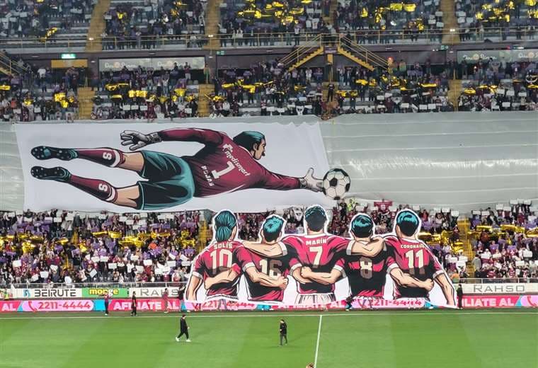 Con un tifo en movimiento en el que se puede observar la figura de Marco Antonio Rojas lanzándose por un balón, el Deportivo Saprissa realizó un bonito homenaje a su leyenda.