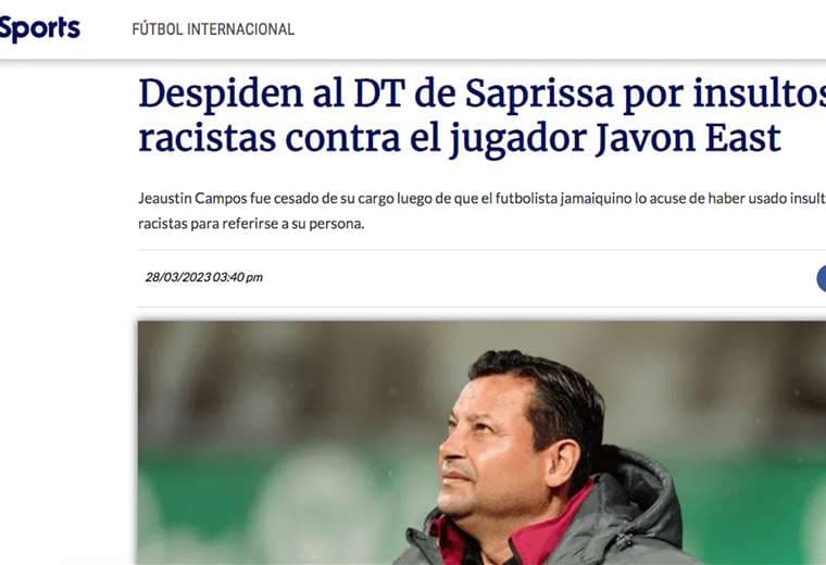 “Saprissa destituye a su entrenador por insultos racistas a futbolista” o “Echaron al DT de Saprissa por una denuncia de racismo”, fueron algunos de los títulos con los que abrieron los medios argentinos.