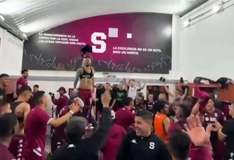 En el vestidor tibaseño, jugadores, cuerpo técnico y el equipo de apoyo de los saprissistas siguieron la fiesta.