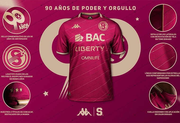 La camiseta de la marca Kappa llevará un sello de 90 años de aniversario, las tres estrellas que recuerdan los títulos de la Concacaf, detalles incrustados en la lateral en tono dorado.