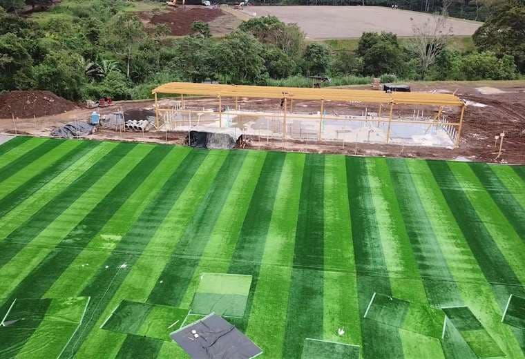 En dicho avance ya se puede observar como se colocó la gramilla natural y sintética donde entrenarán los equipos masculinos y femeninos.