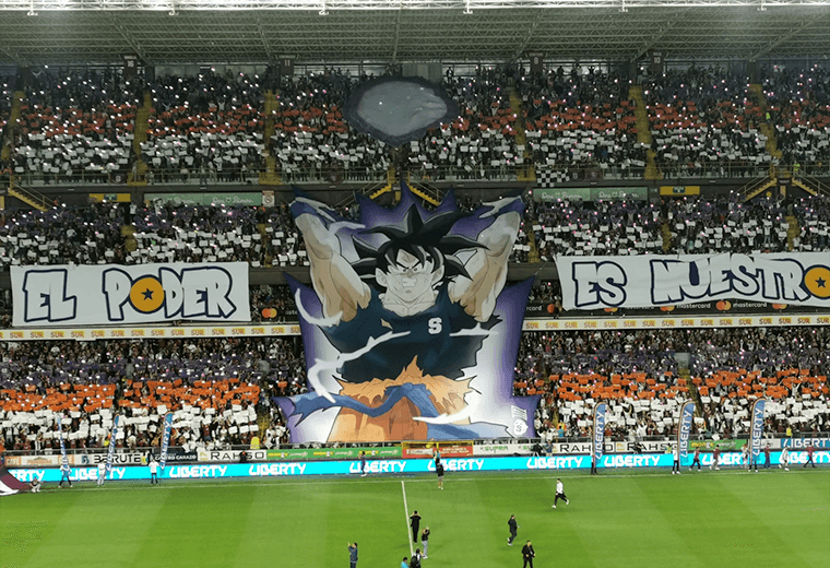 En la gradería lució una manta gigante del famoso personaje de anime realizando su famosa “Genkidama”.