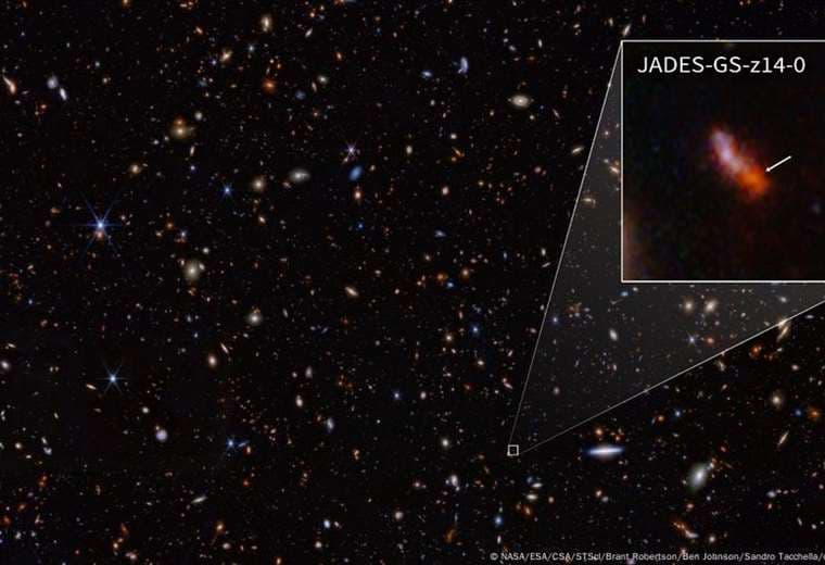 Descubierta el año pasado por el telescopio espacial James Webb, la galaxia JADES-GS-z14-0 está tan lejos que su luz tardó 13.400 millones de años en llegar hasta nosotros.