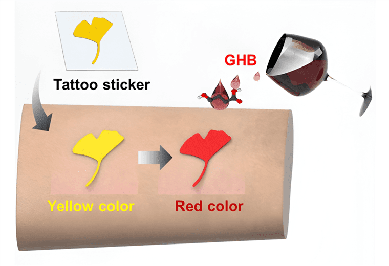 Un equipo de científicos desarrolló un tatuaje temporal que cambia de color tras tocarlo con una gota de bebida que contenga GHB o "éxtasis líquido", una droga incolora e inolora que facilita agresiones sexuales o robos.