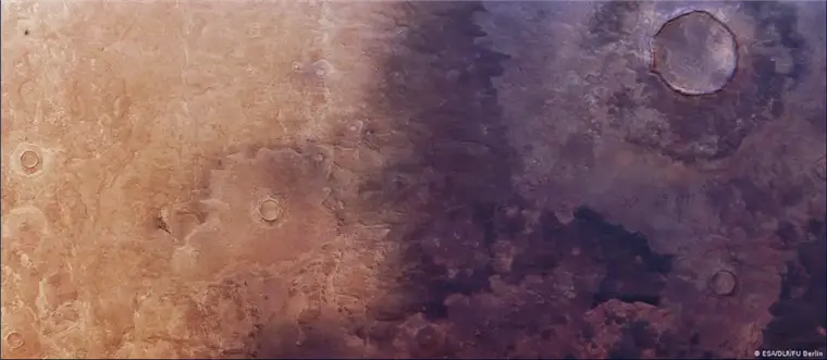 Las imágenes hablan por sí solas. En 2024, la Cámara Estereoscópica de Alta Resolución de la sonda Mars Express, de la Agencia Espacial Europea (ESA), captó una escena que parece partir el paisaje en dos. De un lado, las arenas claras y familiares de Marte; del otro, una extensión oscura que se abre paso como si una sombra líquida se hubiera derramado sobre el terreno y siguiera avanzando lentamente.