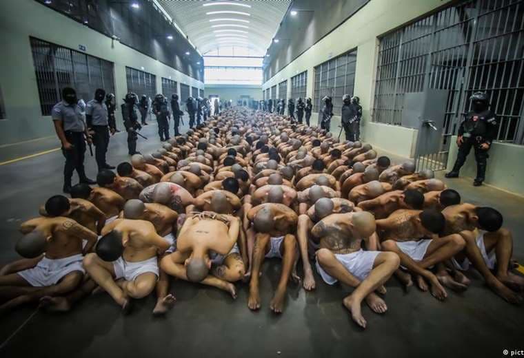 En un vídeo divulgado por el mandatario de El Salvador, se observa a muchos pandilleros -pertenecientes principalmente a la Mara Salvatrucha (MS-13) y a Barrio 18- vistiendo apenas un pantaloncillo blanco y descalzos, ingresando a la cárcel bajo una fuerte custodia policial.
