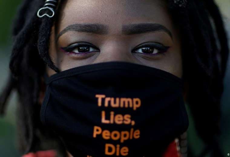 Bajo el lema "Trump miente, la gente muere", los organizadores culparon al gobierno de Donald Trump del elevado número de decesos en Estados Unidos, con diferencia el país más afectado por el virus en el mundo.