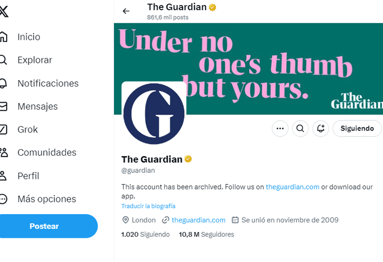 El diario británico The Guardian anunció este miércoles que dejará de publicar noticias en sus cuentas oficiales en X al considerar que es una plataforma "tóxica" y que los perjuicios de estar en ella "pesan más" ahora que los beneficios.
