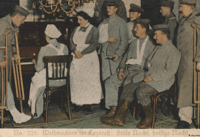 Y entonces ocurrió algo inesperado, en medio de una gélida noche de diciembre, un soldado alemán, cerca de la ciudad belga de Iprés, comenzó a cantar "Noche de paz" y otros soldados también tatarearon la canción navideña. Los británicos, al otro lado, apenas podían creer lo que oían. "Noche de Paz", la canción también era conocida en Inglaterra. Al principio, desconfiaron de los "hunos", como llamaban a los alemanes, y luego aplaudieron y cantaron.