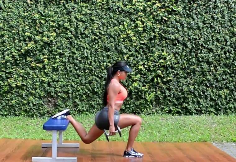 Este es uno de los ejercicios más exigentes y a la vez más completos para trabajar los glúteos y las piernas. Se hace apoyando una de las piernas en un banco o plataforma para trabajar la estabilidad y potenciar la fuerza muscular.