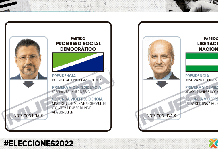 El Tribunal explicó que la papeleta respetará el orden del sorteo de la primera ronda, colocando así de primero en la boleta a Rodrigo Chaves (Progreso Social Democrático) y a la derecha a José María Figueres (Liberación Nacional).