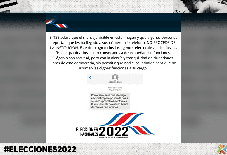 Antes de que abrieran los 2.100 centros de votación en el suelo patrio, el Tribunal Supremo de Elecciones (TSE) comunicaba que dicho mensaje no procedía de esa institución.