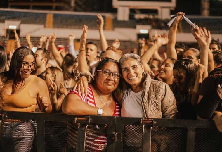 Este sábado es la primera fecha del concierto de Daddy Yankee en el Estadio Nacional. La actitud del público está a tope, y Eva y Marilyn Barrantes están abrazadas y no logran disimular su gran sonrisa.