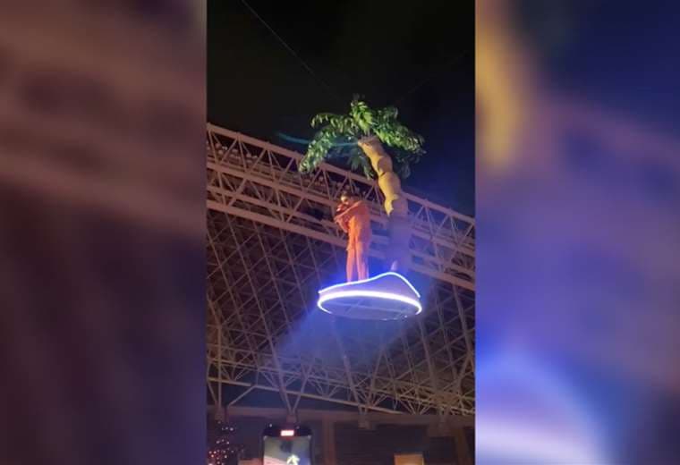 A eso de las 9:30 p. m. pasó lo que muchos esperaban, el artista se subió a una plataforma con una palmera y empezó a "volar" por todo el Estadio Nacional. En esa oportunidad cantó Un verano sin ti y Un coco.