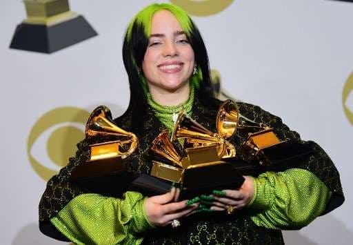 Billie Eilish arrasó este domingo en los Grammys, con cinco gramófonos que incluyen los premios principales como canción, álbum y grabación.