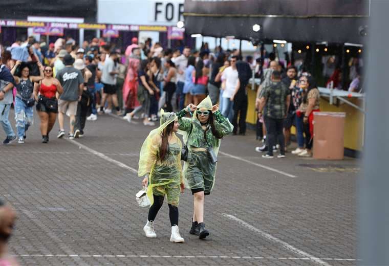 Pese al sol y al calor que hacía hace unas horas, la lluvia se hizo presente para empapar a más de un fanático que disfrutaba del festival.