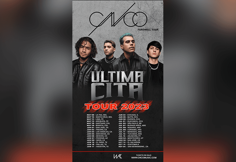 La agrupación CNCO vendrá a Costa Rica el próximo 26 de agosto, como parte de su gira de despedida. Esta será la última oportunidad para verlos en vivo, en territorio nacional, antes de su separación.