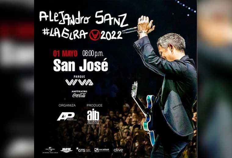 La empresa Arceyut Producciones confirmó una nueva fecha para el concierto de Alejandro Sanz en Costa Rica: el evento será el 1° de mayo de 2022 a las 8 p. m. en el Parque Viva.