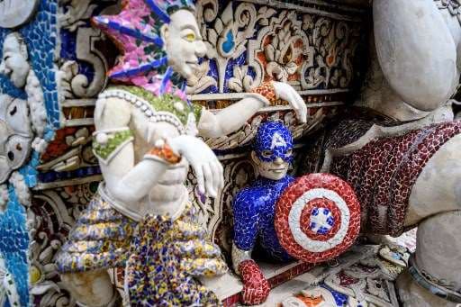 En un templo de Bangkok, las deidades budistas se mezclan con estatuas del Capitán América, Mickey Mouse, David Beckham y Superman, un enfoque de la religión más lúdico con el objetivo de atraer al máximo de visitantes.