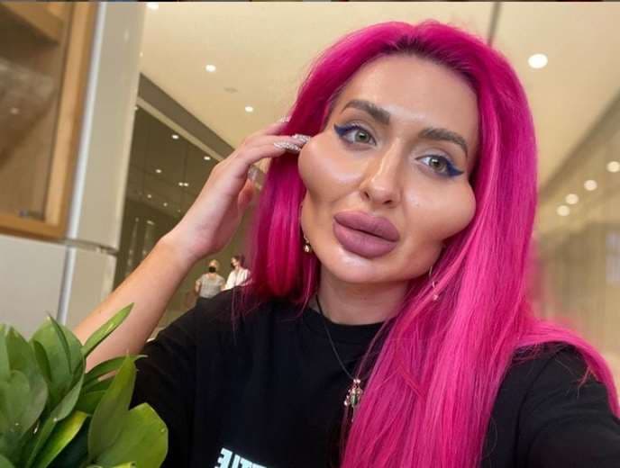 La modelo ucraniana Anastasia Pokreshchuk se convirtió en la mujer con los pómulos más grandes del mundo.