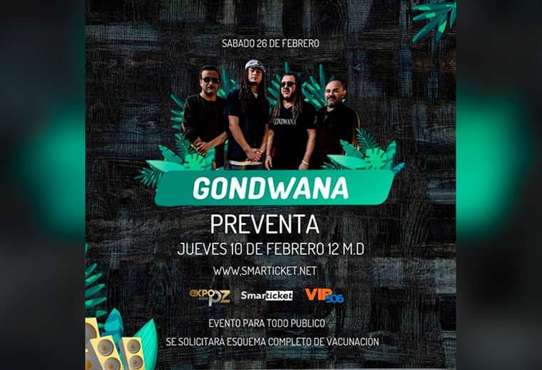 "Antes de la pandemia se tenía programado el concierto de Gondwana en la Expo PZ y, por esas mismas razones, se suspendió. Ahora ya con las regulaciones del Ministerio de Salud se reprogramó para el sábado 26 de febrero en el campo ferial de la Expo PZ 2022", explicó Carlos Salgado, promotor del concierto.