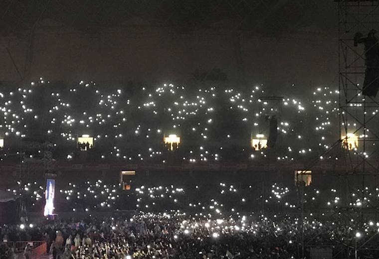 El agua -que a medida que transcurría el concierto se volvía 'pelo de gato'- tampoco bajoneó el ánimo de miles de fanáticos que abarrotaron el Estadio Nacional, en La Sabana, que abrigó el último concierto de su gira 24k Magic World Tour en suelo latinoamericano.