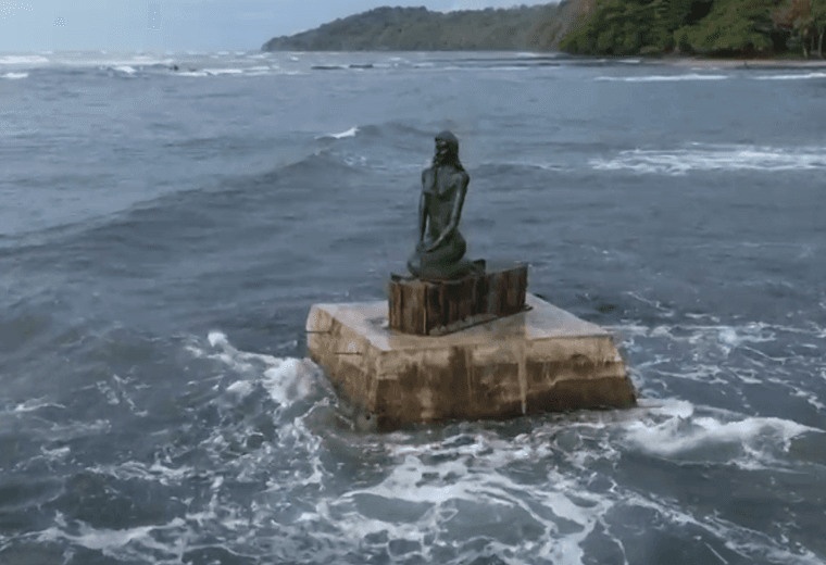 La sirena, elaborada en bronce y conocida por su pose majestuosa sobre una plataforma que asciende desde la superficie del agua, tiene una historia que la conecta profundamente con los habitantes de Esterillos Oeste.