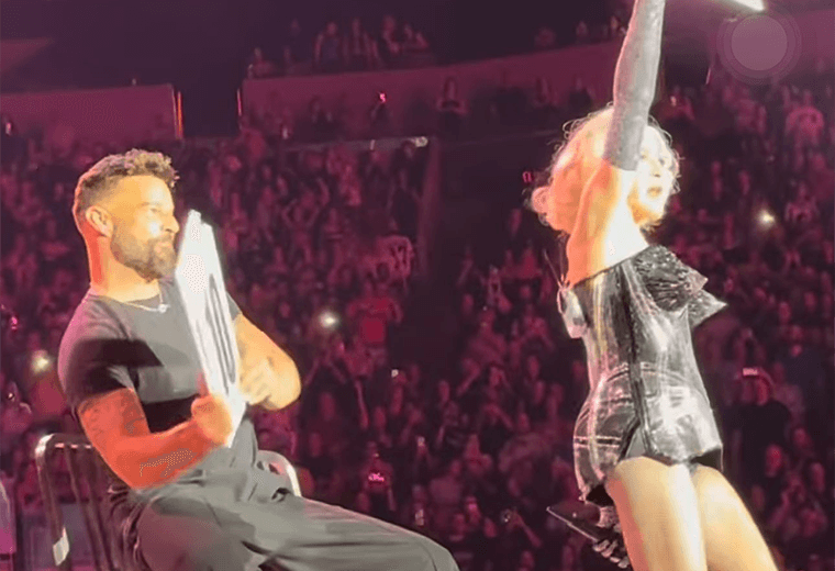 El cantante puertorriqueño Ricky Martin sorprendió a miles de fanáticos cuando se presentó como invitado en el concierto de Madonna en Miami, en el Kaseya Center, la noche de este domingo.