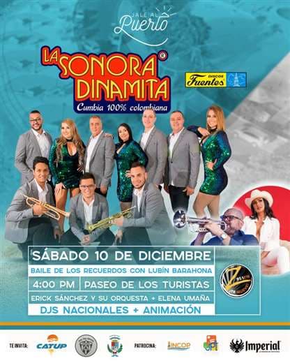 Los grandes conciertos de la estrategia de desarrollo económico "Jale al Puerto" regresan este mes de diciembre con La Sonora Dinamita, exponentes de la música tropical y una lista de artistas nacionales como Marfil, Erick Sánchez y su Orquesta, Lubín Barahona, Elena Umaña, Long Play y varios Djs.