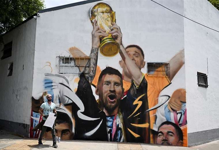 Un mural inmortaliza a Messi cuando levanta la Copa del Mundo