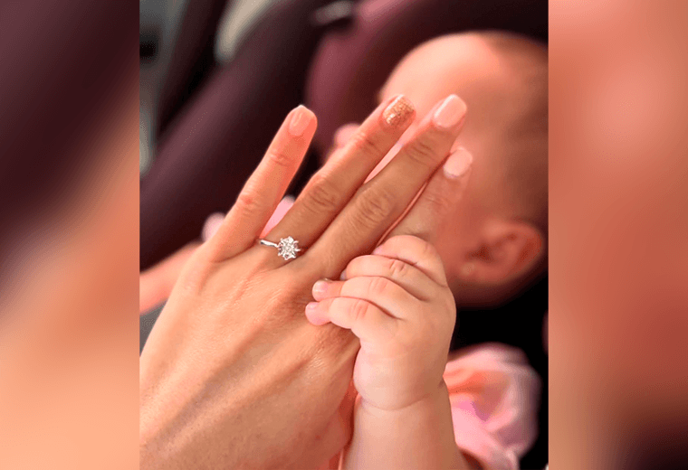 “Y dije sí”, dice la imagen que compartió de su anillo junto a la mano de la pequeña hija de la pareja, quien nació en junio anterior.