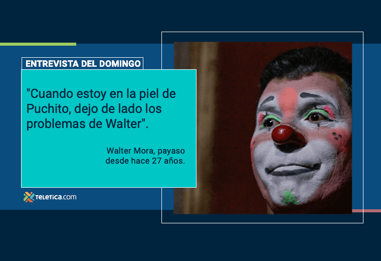 Walter Mora Murcia es un hombre de 59 años, vecino de Desamparados. Desde hace 27 es payaso, y gracias a Puchito, su personaje, y con el apoyo incondicional de su esposa, Hilda Navarro, sacaron adelante a sus tres hijos.
