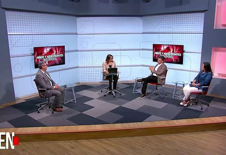 Lilliana Carranza, directora de Estado Nacional, analizó el tema con Óscar Valverde, presidente de la Fundación Paniamor; Rolando Pérez, investigador a cargo del estudio, y la doctora Daniela Carvajal, de la Clínica del Adolescente del Hospital Nacional de Niños.