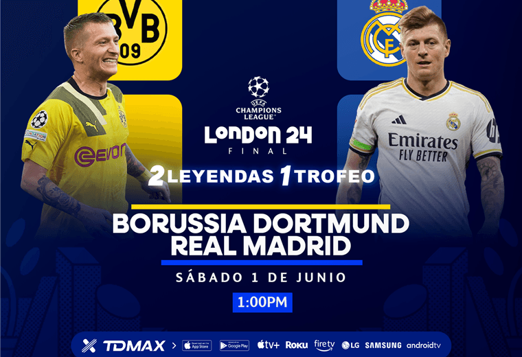 En un solo juego se definirá el campeón de Europa. Borussia Dortmund vs Real Madrid juegan este sábado la final de la UEFA Champions League a la 1 p.m. y si está en Costa Rica, podrá disfrutar del encuentro en vivo por la app TDMAX.