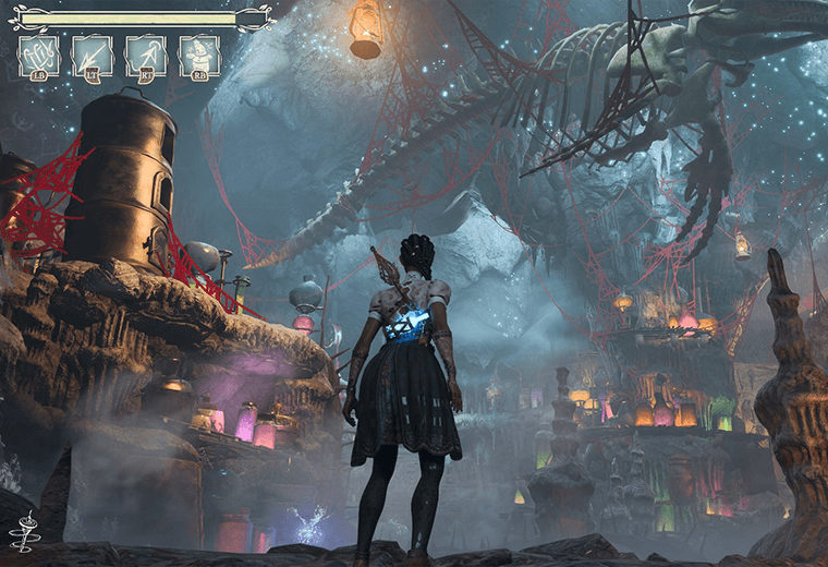 Para nuestra sorpresa, desde el primer instante, el juego se siente ágil en el control de la protagonista. El "plataformeo" es preciso y responde con soltura, permitiendo que la exploración de los bellos escenarios macabros sea intuitiva y disfrutable. No intenta innovar en este apartado, pero lo que hace, lo hace muy bien, apostando por el clásico sistema de arenas, que, al llegar a ciertas zonas, activa muros que sellan el área hasta que se purifiquen todos los enemigos.