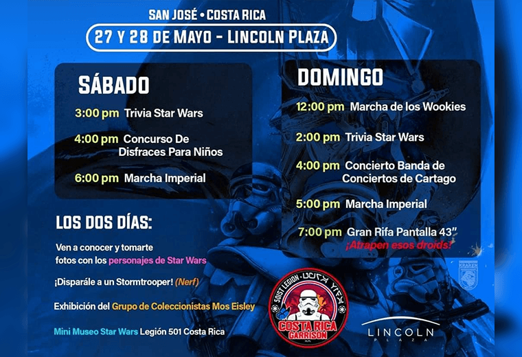 Los amantes de Star Wars tienen una cita este fin de semana en Plaza Lincoln, en Moravia, en el llamado Vader’s Fist Costa Rica 2023.