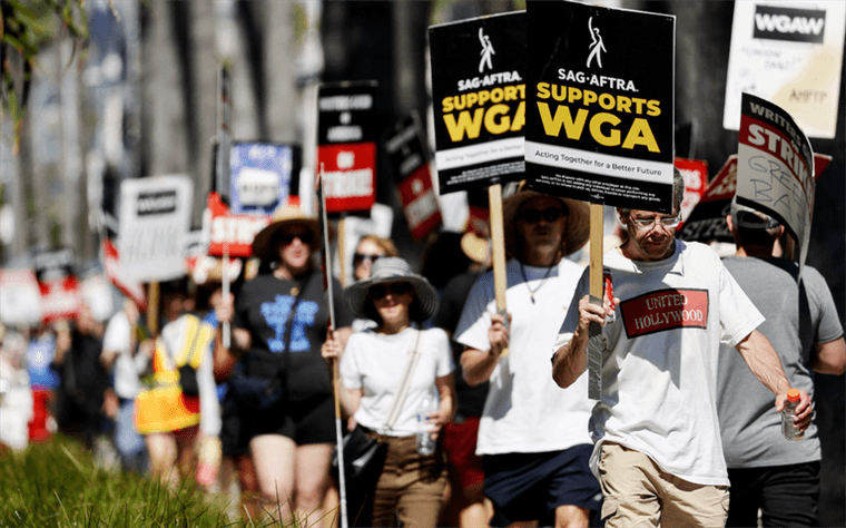 Actores y guionistas buscan aumentos salariales para enfrentar la inflación, ajustes de pagos residuales y protección a futuro por el uso de la inteligencia artificial en las producciones de cine y televisión.