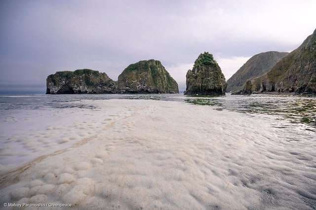 La semana pasada, científicos observaron que un manto de contaminación de 40 kilómetros de largo, compuesto de microalgas, se desplazaba por la costa, hacia las islas Kuriles, disputadas por Rusia y Japón.